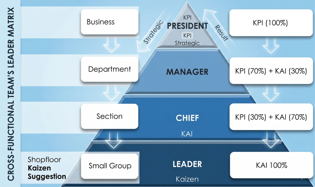 To ensure the organization operates in line with MTAT strategy, two-way communication through Policy Deployment (Top-down & Bottom-up) is essential to drive the organization to achieve customer expectations, reflected in MTAT objectives and targets at three levels.